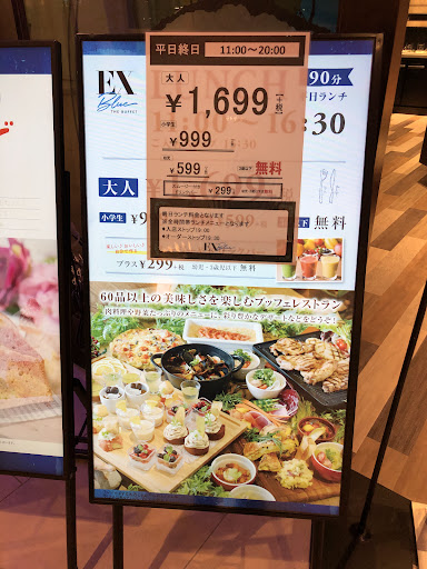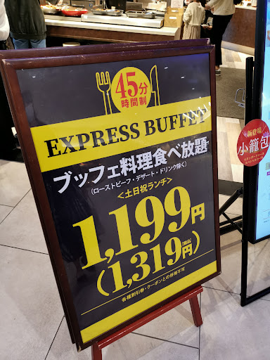 店のハード、写真、看板などオシャレで女性ウケが良い店作りだと思います。 ひとり税込3000円近い一番グレードが上のランチビュッフェをお願いしました。 ステーキ、寿司、小籠包が食べ放題に追加されるコースです。 このビーフステーキ、とにかく硬いです。 スーパーで売っている一番安いオーストラリア産の牛肩肉と何が違うのでしょうか? 連れがポークステーキを注文したんですが、写真の通り僕のビーフステーキと合盛りにされました(笑)食べにくい。 寿司はシャリがデカくすぐ腹にたまるから量を食べれずネタは小さい。 小籠包は当たり前かもしれないけど、冷凍食品。コーンスープは粉を延ばしたであろう味とコクが極薄。 料理人、職人の要素が皆無、学生のアルバイトだけでもやれそうです。 パスタ、リゾット、ピザ、カレー、うどん、ラーメン、などそのほとんどが炭水化物であり、たくさん食べることは困難です。 炭水化物以外はサラダと少しの鶏肉、白身魚があったくらいでしょうか。 美味しかったものは、「黒カレー」と「カスタードプリン」です。 正直、あれほどのセルフサービスで3000円支払うなら、フルサービスの高級ランチの30...