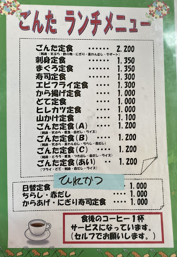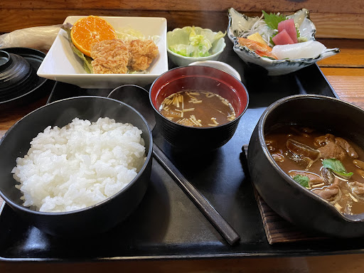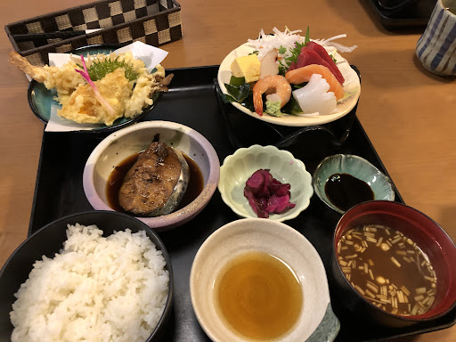 Read more奇抜な色の建物でわかりやすいです。お昼の営業時間は11:00-14:00頃のもよう。平日12時頃、ちょうど駐車場に1台空きがあり滑り込めました。 店内は広々としていて、小上がり席は掘りごたつです。満席で忙しそうな雰囲気でしたが、提供は早い!そしてコスパ最強です。値段の割に量が多い。個人的には色々な料理が少しずつ盛られてるあたりが嬉しかったです。刺身も天ぷらも食べられます。ブロッコリーの天ぷら初めて食べましたが、美味しかったです。天ぷらの衣は厚め。茶碗蒸しはしっかりした固さで...