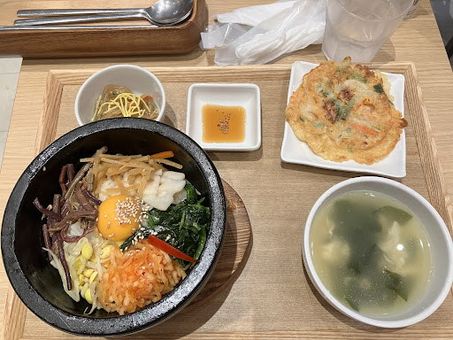 【石焼ピビンパとスンドゥブセット】¥1408 ★石焼ピビンパ◯ ★スンドゥブ◯ ★チヂミ✖️ ★チャプチェ