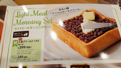 Read moreモーニング食べに久しぶりに来ました! 以前は喫煙席と禁煙席とありましたが、今は全面禁煙になってました。 モーニングセット、朝定食いろいろあってアプリがあれば朝から使えるクーポンも。 たまたまクーポンをパラパラ見てたら店員さんが使えるクーポンを発見してくれて、セットグリーンスムージーがクーポン価格になって54円安くなりました。発見してくれなかったら知らずに通常価格のままでした。 小倉クリームトーストセットはメニュー写真ほどあずきの量はありませんでしたが、マスカルポーネクリームはたっぷりあっ...
