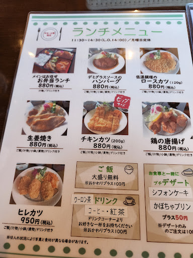ランチで伺いました。 店内は天井が高いウッドハウスで、お座敷もあり、広々としていました。窓を開けていて、座席の間隔もとっており、テーブルにクリアな仕切りも置いてあるので、感染予防の対策がしっかりされていると思いました。 料理の方は、値段以上な感じがします。 お弁当は品数が多く、食べ応えがあります。コーヒー(食事を頼むと一杯セルフサービス)とサービスデザート(この日はプリン)にお腹一杯になりました。 残念だったのは、入り口に灰皿があるので(店内は禁煙)風向きで開けてある窓からにおいが入ってきてしまっこと。 それから、お店の方が従業員の方のミスを叱っているのを聞こえてしまったこと。 (従業員を叱るならお客さんがいないときにしていただければと思います。) 食事は美味しいので、是非...