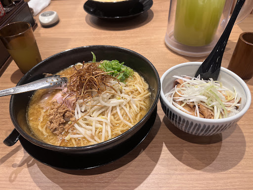 頼んだのはさきがけ味噌ラーメン(1,001円)に焼豚丼セット(+363円)です。到着まで10分くらいでした。麺は中太麺か極太麺で選べます。 さきがけ味噌とは何ぞやと思いながら食べましたが、味は別に悪くないのですが味噌ラーメンなのに味噌って感じがあまり前面に出ておらず、ニンニクやら背脂やらなんやらの味で味噌がボヤけてる印象を受けました。もう少しガツンと味噌味を押し出して欲しいなと感じました。 焼豚丼は多分ラーメンに使われてる焼豚をそのまま使っておりタレがかけられている状態です。個人的には悪く無かったのですが、タレが中華系の香辛料が所々感じられたので苦手な人は食べない方がいいかもしれません。