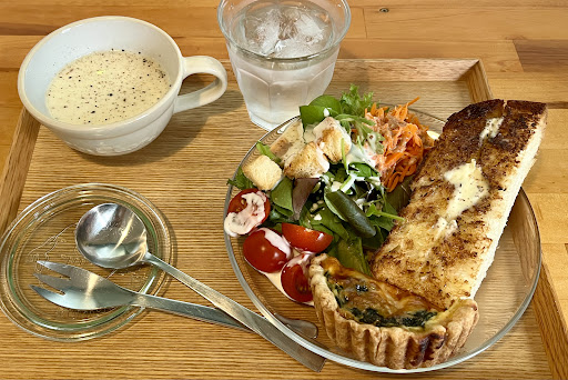 Read more土日は営業していないので平日のランチで訪問。 キッシュランチ(ドリンク、デザート付き1200円)をオーダー。 コーヒーは注文を受けてからミルで豆を挽いてくれる。 厚切りトーストに半分のキッシュ、サラダにスープがまず運ばれてきた。スープは新じゃがのポタージュっぽかったがお店の人に聞いてもわからないとのこと。 キッシュは熱々で美味しかったし、トーストも中身がふわふわで美味しかった。 次にコーヒーとデザートが運ばれて来た。 半分のスコーン、クッキー3種類、ブドウゼリーと種類も豊富。 コーヒーも熱々で濃さ、香りも申し分な...