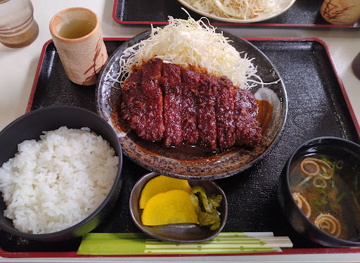 来週から仙台に出張。 東海市内にある喫茶店が名古屋の有名店とんかつ店の矢場とんで修行された事を聞き、把握していたので一度行ってみました。 高横須賀駅の南にある喫茶店で、駐車場は10台以上停められます。 店の幟から矢場とんの文字が入っており…。 店内に入ると調理場内のご主人が矢場とんの法被を着ておられました。 メニューの中に、矢場とんのメニューも結構ある。 値段を見るとやはり矢場とん並みの値段が痛いですね…(汗)。 最近矢場とんでも食べてなくて、私は「ロースとんかつ定食」(税込1,560円)、嫁さんは「かにクリームコロッケ定食」(税込1,400円)を注文してメニューの配膳を待ちます。 15分程でメニューが配膳されました。 ロースとんかつのボリュームは見た目ありますがとんかつは薄め…。 まずしっかり味噌がかかったロースとんかつの端を食べてみる。 もう少しロース肉の脂身も感じたいがそれもない…。 甘めの味噌に卓上に用意された辛子をつけていただきます。 味噌は矢場とんよりちょっと粘性があり辛めにも感じ、味噌だくにしてくれたら付け合わせのキャベツも味噌で食べられたのに…と思ったのは私だけではないと思います…。 一度は来たかった店でした。 ごちそうさまでした。 Pay...