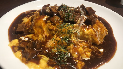 Read moreランチにて訪問。 オシャレで落ち着いたこじんまりとした雰囲気の店内。 ランチメニューのオムライスビーフデミグラスソース限定5食ってのをオーダー。 見た目〇 ボリューム〇 サラダと冷製スープは問題無く 美味しく頂けたが、 問題はオムライス。 流行りっぽいトロトロ系の玉子。 デミグラスソースがシャバシャバのめちゃ甘く コクもないし苦味も雑味もない。 そして何より 肉がとにかく臭い!! 猪肉でもちゃんと処理してればここまで臭わん! ってくらいの獣臭。 噛めば噛むほど臭い。 口ほどけも悪いのに臭い。 食欲失いました。 残すのは勿体ないので、 雑食の後輩に全てたべてもらいましたが、 値段と料理...