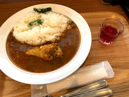 そして料理ですが、私はカレーを頂きました。 大変美味しいカレーで具の鶏肉がしっかりと柔らかく煮込まれています。