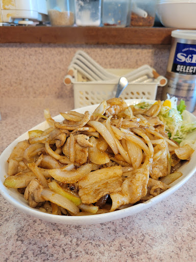 シャキシャキのたまねぎと食べ応えのある豚肉、そして下にはしっかりとチャーハンがあり、ケチャップのような甘味を感じるやつだった。