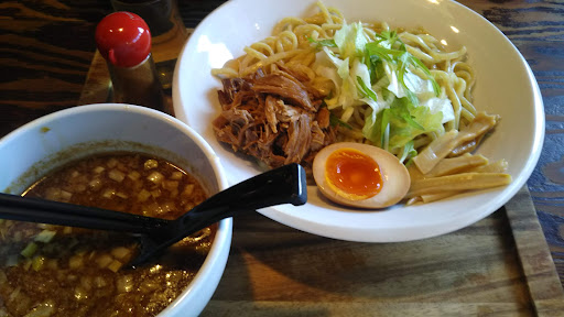 再訪。店内は少し寒いくらいで、ちゃんとどこかで換気されてるのだなと感じました。つけ麺を注文。麺が太麺でモチモチ。おいしいです。麺の量は200グラムらしく、おなかも一杯。唯一、煮卵のみたれに浸けすぎなのか、味が濃すぎて残念に思いました。もう少し薄味でも良いのかと…ただ、850円(税別)でお腹一杯になれるので、全体的に満足です。