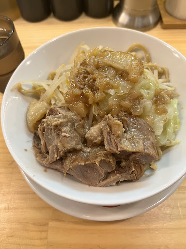 Read more(゚д゚)ウマー 二郎が好きだけど訳あってここにいるたまさんはメニューに二郎って親切に書いてくれているここに来たね(・ω・) 二郎では無いけれど、ジェネリック二郎としてはアリ寄りのアリの出来映えだと思うね(・ω・)ノ チャーシューはホロホロでぐっど、背脂が少しケモノ臭がするのは気のせいかな(・ω・)? スープは非乳化過ぎの分量間違えた醤油ラーメンかって思うほど油層くっきりで違和感を感じるあっさり味だけどまぁまぁ(゚д゚)ウマー きっと親切心でにんにくを入れていないんだろうけど、机に無料のにんにくあるから問題なしね(・ω・) にんにくガッツリ入れないとこのスープだと二郎系にはならない系のスープだからガッツリ入れようね(・ω・) 麺もワシワシまでとは行かないけど寄せてきていて評価はできるね(・ω・) 店内の雰囲気もおしゃれで(゚д゚)ウマー 大盛が200グラムだから、おとこにょこなら大盛にした方がよいよ(・ω・)