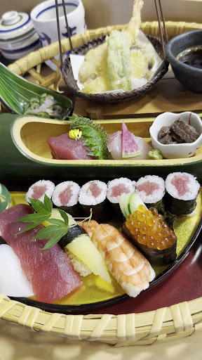 Read more月曜日の11時40分頃にランチで利用しました。この時間になるとお客さんがいっぱいで、 カウンター席が一つ空いているだけでした。 数分あとに来たお客さんからは順番待ち状態でした。常連客も近所のお客さんも多いようです。親しい人はお店の人と楽しく会話をしたり、自分で奥からお酒を持ってきたり随分慣れた様子でした。料理の方は翔月をオーダー。約10分ぐらいで料理は出揃いました。刺身のマグロはもちもちした食感で、ビントロ(?)適度に脂が乗っていて美味しかったです。お寿司もネタが大きく、天ぷらのエビやキスも美味しかったです。デザート盛りはバニラアイスのきなこがけと、コーヒーゼリー、オレンジ...