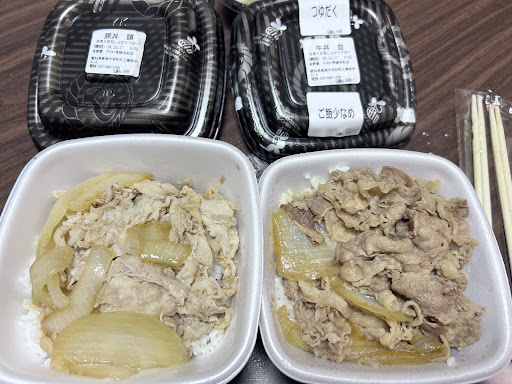 Read more豚丼のアタマ(肉大盛りご飯普通盛り)と牛丼の並を比較してみましたが明らかに肉が少ない。 確認の電話をしてみたところ、豚肉はタッパーに保存してあるものを使っているため間違いないはない、見た目に関しては豚肉よりも牛肉の方が大きく見える為量に問題はないとの事でした。 どちらも並であれば肉の大きさに関しては納得できるが大盛りと並で肉の違いだけでここまで差ができるのは明らかにおかしいと思った。 豚肉の並のタッパーとアタマのタッパーを間違え、それを確認していないのだとすれば普通に詐欺行為だと思います。