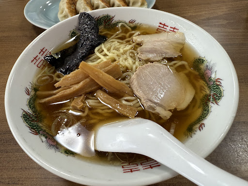 Read more昔ながらのラーメン屋さん。昭和にタイムスリップできます。今回いただいた「ラーメン」は、あっさりとした醤油味で、旅館で夕食の後、小腹が空いてもツルッと食べれてしまう、さっぱり派!ここに、温泉卵をトッピングで、胃も温泉気分に。 今回は日帰りで、夕食として来ました。ゆえに餃子とごはんを追加。餃子はモチモチで、ごはんが進むことと、お米は文句なく美味しい地域なので、ついつい2杯いただいたら、サービスで小皿の一品戴きました! 胃も心も満たされるお店です。「観光地価格」ではないこと...