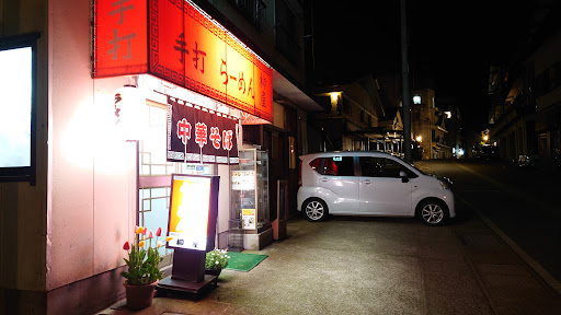 友人と中越旅行した際に、日本3大薬湯の1つである松之山温泉に行ってみました。 温泉「鷹の湯」に入る前に腹ごしらえをしようと言うことで、そばにあったこちらのお店に入ってみました。暖簾をくぐると、店内には4つほどのテーブル。 着座してメニューを眺め「ラーメン」(¥750)と「餃子」(¥450)を注文。 女将さんは、愛想よくてきぱき対応しています。 待つことしばし、ラーメンと餃子が提供されました。 温泉の傍で食べるラーメン。何となく、風情を感じます。 店名に「手打ちラーメン」とあるように、麺はちょっともっちりとしていて美味しい。 醤油スープもさっぱりしていて、結構、飲んじゃいました。 手作り餃子もお薦め!