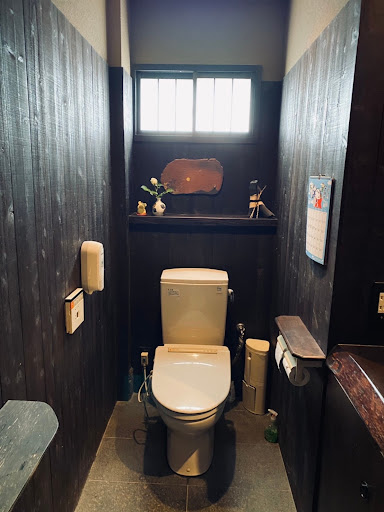 余談ですが、トイレの手洗い場もらなかなかこだわっており 面白い形をしていました トイレの下には敷き詰められた石、トイレのスリッパはゲタ というなんとも趣のあるトイレ