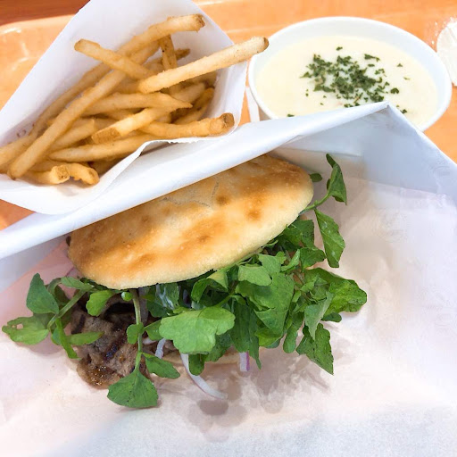 初めて食べました。人気No2商品のプライムバーガーが約1300円程との金額設定だったので期待しました。焼き時間10分掛かるとの事でした。まずお店の写真と実際の商品が違いすぎて、ハンバーグがとても小さく見えましたが、これは本日のパンが大きいから相対的にハンバーグが小さく見えたのでしょうか?信州牛のハンバーグは粗挽きなので歯応えは有りましたが、ハンバーグに期待する肉汁は全く出ず、旨味が感じられませんでした。またハンバーグの中身が、赤色のままでしたので少し心配になり店員さんに確認したら、マニュアル通りに調理しているとの事で、表面の焼き色は見えるが中身は見えないのでわからないと言われました。こちらが知りたいのはハンバーグの中身が焼けていない赤色でも食べて大丈夫なのか?ですがハッキリと大丈夫という回答は有りませんでした。しかし追加でもう少し焼く事は出来ますとの回答でしたのでお願いしました。1∕3程食べていたのですが外のパンは新しいパンにしていただき、ハンバーグは元のハンバーグを半分にカットして中身がよく焼けるようにして調理していただきました。パンは硬めで食べ応えありますが、ハンバーガーとしては具材とバランスよく食べ進める事が難しく感じました。店員さんはフードコートではよくある感じの挨拶無しで愛想はあまり無い方々でした。店長さんはこちらの訴えに丁寧に対応していただきました。本日食べたプライムバーガーは店舗スタッフさんには一度自分でこのお金を払って食べてみてほしいです。満...
