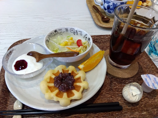 Read more一度訪れてから定期的に通っています。 とても素敵な優しいご夫婦が経営されている隠れ家的なお店です。 店内はハワイを感じさせる雰囲気で音楽が流れています。 地元のお客さんが多いです。 1日モーニングはドリンクの価格でトーストとワッフルから選べます。 珈琲も500円と良心的(苦味がなく飲みやすい) です。 モーニングにはサラダとフルーツとヨーグルトも付いてきます。 デザートのセットもおすすめです。(800円) 単品とセットがあります。 モーニングのあとにデザートセットをいただきました。 パンもふわ...