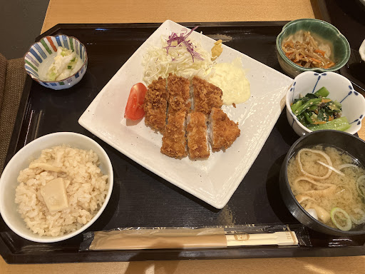 Read more定食は美味しかった。ご飯が白米・炊き込みご飯・雑穀米の3種類から選べる上に、お代わりできます。炊き込みご飯お茶碗半分で頼んだらそれより多く出てきました。どうも『少なめ』という量が決まっているのかも(?)友人が半分食べてくれたので、2杯目は雑穀米を少なめでいただきました。プチプチの食感が良かった。鳥の炊き込みご飯はゴボウも入っていてとても美味しかった。 席にはアクリル板がちゃんと置いてありました。2人がけの席でも、隣のテーブル側とテーブル中央にもあり、友人と向かい合っての食事も安心してお喋りもできました。