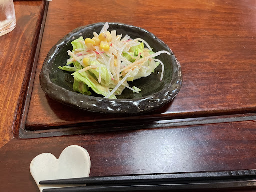 Read more12月も残りわずかの平日に大人3人子供2人で伺いました。 13時を過ぎていましたがまだ2組待ってる方がいました。 15分ほど待つと奥の座敷席に通されてランチが残り3個だと言うことでした。 大人はランチを子供は2人でナポリタン1個を頼みました。 ランチはサラダ、小鉢2つ、メインと順に運ばれてきました。 小鉢の卵巾着と大根の煮物がとても美味しかったです。 メインはハンバーグでした。 ボリューム満点のハンバーグにおソースがビーフシチューという贅沢な一品。ソースもきれいにいただきました。 子供たちのナポリタンも辛くないように作りますね。とお気遣いいただきました。 少し食べましたがナポリタンも美味しかったです。 最後はデザート。オレンジ入りのチーズケーキを選んだのですがとっても美味しかったです。 食べたことのないサッパリした味でオレンジとても合っていました。 駐車場がもう少し余裕があるといいですね。...