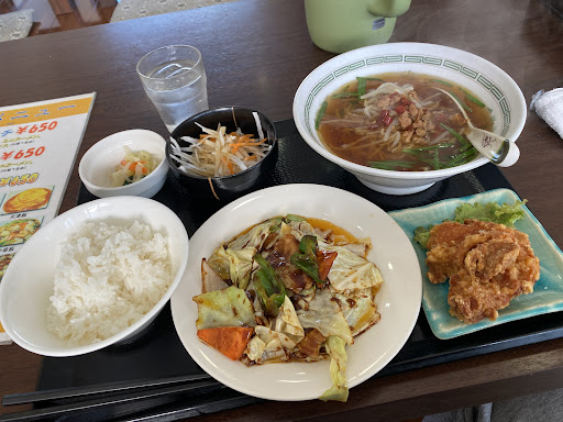 2023年10月にディナーで訪問。ディナーだけどセットメニューがあって1000円でガチ盛りでしかも白米おかわり自由!笑 ちょっと大盛りすぎてびっくりしました!単品メニューにしようかと思いましたが、セットメニューがお得すぎてついつい。 餃子セットを選びました。どれも食べやすくかなりお腹いっぱいになりました。 持ち帰り可能なので持ち帰れるものは持ち帰っても良いかもしれません。 平日の20時だけど駐車場満員で、席もほぼ満員。かなり人気なのかな?という印象でした。 中国語が飛び交ってますが店員さんは皆さん日本語も問題なく、ガチ中華的な居酒屋メニューもかなり気になりました。次は居酒屋利用したいです。 paypayと現金...