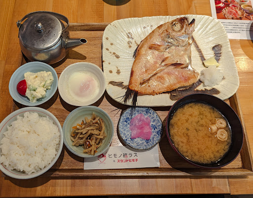 Read more経営陣に猛省を促したい。現場を見ろ! 空港のレストランでランチ1,000円でコスパはいい。問題は店舗デザインと、従業員を考えた作業内容。調理場から焼き上がったひものを配膳台にもってくる人、膳を上げ下げする人、注文とる人、洗い場の人の動線が重なってしまい、従業員同士で混雑してしまっている。完全な店舗デザインのミス。下げられたお膳が客の前に積み上げられ、食欲を削ぐ。調理場の扉が重く、片手に重い膳、片手で扉開けようとして、食器を落としていた。当日は3人の従業員でてんてこ舞い。注文とってくれなくて、呆れ顔でよそに行く客。カウンター越しに手を伸ばして重い膳を下げようとして、腕がブルブル震え、危なっかしくて思わず加勢した。非力な女性に無理な作業。もちろん従業員そのもののスキル、チームワークもあるだろうが、従業員トレーニング、適正人材配置含めて、いかに経営陣が現場を見ていないか痛感した。味はいい...