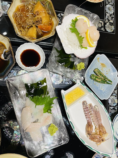 A spacious Japanese restaurant with a great menu if you're in the mood for seafood and other traditional Japanese dishes. The prices are quite reasonable considering the generous portions and high quality. Very fresh, very tasty. For seating, you have the choice of a counter or sitting on an elevated tatami floor with a pit under each table, giving you the option of sitting with your legs either crossed or under the table as if you're sitting in a chair. There's also plenty of parking, and the staff are friendly. One note: The menu is in Japanese and has no pictures, so if you can't read and/or speak Japanese well, you will probably struggle...