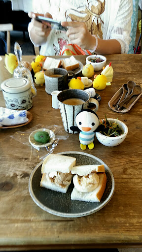 What a fantastic place to be on a spring day! This is my new favorite spot in Tokoname. A cafรฉ, a gallery (zakka shop) and a nice garden to soak in the atmosphere. Lunch choice is limited but it is tasty. I enjoyed the "green mochi & anko" hot sandwich. It tasted like "Aichi's heaven". Coffee is good too. Overall this is a very pleasant place to enjoy time. Card payment accepted. P.s. green mochi are...
