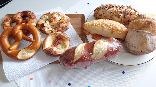 Read more最初に。。。ハード系パンが好みではない人、日本によくある具沢山のお惣菜パン(コロッケや焼きそば、ピザ、様々な具材を使用したサンドウィッチ等)を好む人には向かないお店かもしれません。 前から気になってたスイスの本格的なパン屋さんに初訪問。名古屋市内にあった店舗を常滑に移転し、ファンがわざわざ市内から通いに来るというほどの人気店のようだ。 住宅街に現れる白い壁のお店。駐車場は広いため安心。建物の見た目からしてもうお洒落で可愛い。期待値が高まる。店内へ入ると、平日だというのにお昼どきのためかほぼ満席。今回はパンをテイクアウト購入の予定で来店したが、ランチ利用なら早目が良さそう。 こじんまりとしたショーケースふたつ(ひとつは冷蔵用)にズラリとハード系のパンが並ぶ。ランチメニューにもある、キュロットケーキやサンドパン?もある。かなり大ぶりのサイズで食べ応えがありそう。 ここでの口コミで、皆さんがオススメする、プレッツェルを三種購入。(シンプルな塩・アーモンド・チーズ)他にも目移りしてしまい悩んだが、サンド系やメメという甘いスイーツタルト、ナッツやドライフルーツを使用した王道なハードパンを選択。(名前わからずごめんなさい)紙袋が無料なのも有り難い。 どのパンもズッシリと重量感があり、外はパリっとしていて中はもっちり系。まだ全種類食べてはいないが、どのパンも素材からこだわりを感じ、とても美味しい。特にチーズやサラミ、ピクルスを使用したパンは、見た目はシンプルだがひとつひとつ旨味が凝縮されて、とても美味。噛みしめる度にお口の中に旨さと幸せが広がる。自然に笑顔が出る…そんなパン屋さん♪ お気に入りのパン屋さんがまたひとつ増えました。リピート確定!ハ...