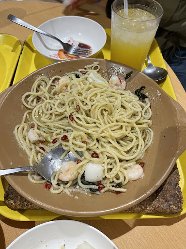 まずレジの女の子の声が小さい。ペアセットはパスタの量2倍サービスと書かれているのに、追加料金を取るようなニュアンスの伝え方をされた為「無料で2倍にできるっていう意味じゃないんですか?」と尋ねると無反応の後、無言で他スタッフへ確認しに行き「はい、こちらペアセットなので2倍です」と。笑