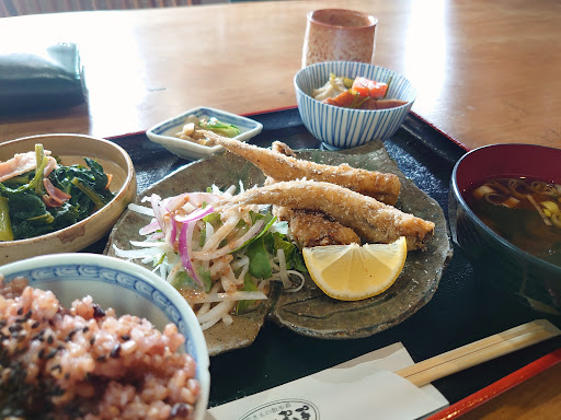 Read more2025年2月休日に訪問。 グーグルマップのクチコミが高評価だったのでランチはこちらで!と思い訪ねました。 ランチ時には少々遅かったのでお店に到着してまず、あれ?営業してるのかな?となる店構えに入店をためらった。中を伺え知る事は出来ないしランチの看板等が全くなかったので…。意を決して引き戸を開けると狭い店内は、ほぼほぼ満席状態。私が入店してからも4組くらい来て外で空席待ちの列ができるほど。 ランチは6種類程ありましたが既に3種類が終わってました。早めに来た方が良さそうです。 休日とあってなのか先客の方々も料理が提供されるまでしばらく待ってるような…。結局私も30分程待ちました!バスの時間が迫っていたので気になって時計ばかり見て待ちましたよ! ランチ自体は美味しい方だと思います。小鉢2種は美味しかった!ですがメインが…特に美味しくはなく、しかも2切れしかないし…これは残念でした。量は少なめなので少食女性向け。 接客に関しては悪くないです。むしろ親切です。ただ、待ち時間がかなり長い!! 店内は狭い上に、かなりゴチャゴチャしたディスプレイで落ち着かず。座席の間隔も狭く更に満席とあって落ち着かず。 お店の雰囲気が私の好みとは合わない、料理は普通、提供時間が長い、で総合★2です。 こじんまりした雰囲気、軽めのランチ、時間に余裕...