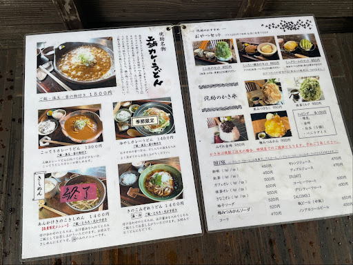 Nestled in a small shopping section with pottery and woven baskets shops, this restaurant appears to specialize in udon set lunches, sweets and snack. I ordered the recommended meal, a udon curry hybrid type of set meal. The noodles were very interesting, almost gummy in texture but delicious. The restaurant is cozy, with jazz music and wooden decorum humbly lit. Staff were kind and only in the dining room when needed. It felt like a meal at someone’s home. Curry set was 1,500 yen, which is perhaps slightly steep for Japanese standards, but the overall experience made it...
