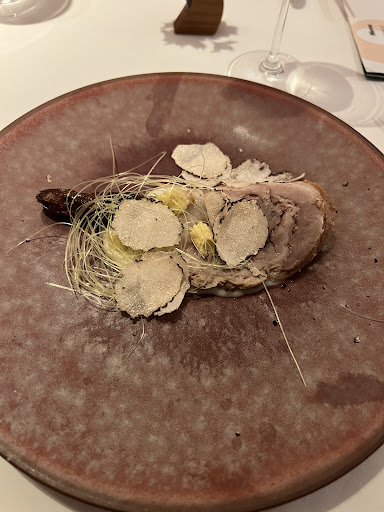 まず、お酒はシャンパーニュ以外のボトルワインはリストにありませんでした。(頼めば別でリストを出してくれるかも) 私たちはペアリングコースの4杯のものをオーダー。 普段自分たちで選べと言われたら頼まないようなものや珍しいものも出していただけ、料理とのマリアージュを楽しめました。 また、4杯といいつつ、白と赤は0.5杯を2種類出していただくなど、杯数の限りがある中ペアリングに工夫されていて大変満足しました。