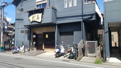 大真は何料理?、中から鍋の音、中華鍋だよな?、恐る恐る重い扉を開ける、カウンター席ほぼ一杯、二人掛け席へ向かうも二人ですが ?と聞かれ最後のカウンター席へ移る。