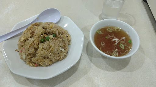 早速頂きます! 1口食べると熱々で火傷しそう(^-^; 味は やはり昔ながらの街中華な炒飯!塩加減も絶妙でバランスの取れた味付け! チャーシューの刻みも良い仕事してますね。 炒め加減は ややしっとりな感じか?自分はパラパラより 少ししっとりが好きなので この炒め加減も好みでした!