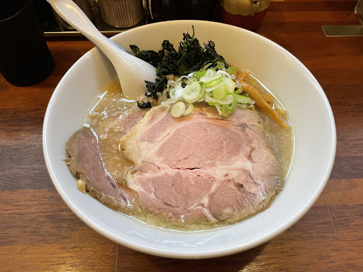 アラフィフゾーンに入って、次郎系はもうたべないかな〜なんて思ってましたが、突然の出会い! 戸惑いながらも心のスイッチ入れて食べ始めましたが、「減らねえ。。。。」食べても食べても減らん。20代の頃ならサクッといけたのでしょうが、無理。。「否! 」「負けない!」「残さない!」で、気合いで完食しましたよ。。。だけどねえ、辛かったの。再来週、健康診断だし。 -———————————————— 辛細切りネギらーめんを頂きました。美味しいですね。白髪ネギを想像しましたが、細いねぎをスライスした感じでした。あとはそれより薄いメンマ。食感を考えてこの組み合わせなんでしょうね。挽肉とあとは細く切った豚肉。とハムくらいのサイズの厚切りお肉。いつも通り着丼と同時にそこに沈めて出番待ちさせます。なんだか麺を一気に食べすぎて具材が余ってしまった。。。。 ———————————————— またも辛細切りネギらーめん。 美味しいですねぇ。息のあったコンビプレーも良いです。細ネギはボールに入れて、てぼの上で温めておく。シャキシャキでは無いですが、丼内での一体感を感じます。温度が下がるとしょっぱさを感じますので、全速力で食べます。 ———————————————— 2021.8 水道だかエアコンだかの故障で暫く休業してましたが久しぶりに訪問。。。。 夏だから?麺の具合もスープの具合もなんか違うような。、。スープはライトな感じ。麵はゴワ系の粉感が強くなったような、。。。 まぁ体調によってもだいぶ変わります...