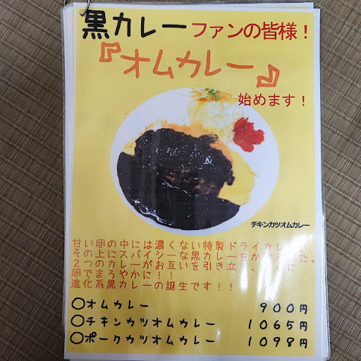 味は、オムの中のライスが、なんと混ぜタイプのドライカレー。珍しいです。 卵も、フワッと良い仕上がり。 かかっているカレーが、辛さ強めで、味も濃い濃厚なコクの黒カレー。中のドライカレーとマッチングも良く、ご飯が進みます。黒カレーは、子供には辛さがアウトレベルなので要注意。