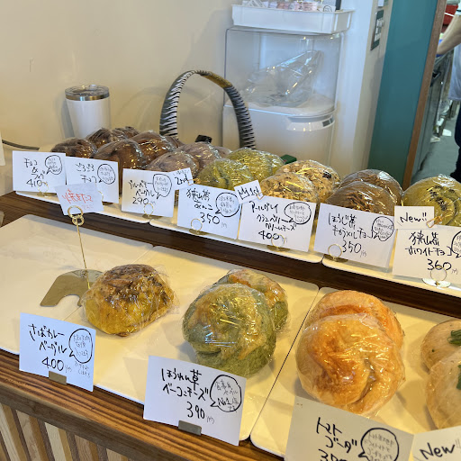 Read more平日12時ごろに初来店。 店員さんは笑顔で出迎えていただき、甘い系、食事系等を直ぐに教えていただきました。 「①定番プレーン、②シーズン物ほうじ茶芋レーズン、③同じくシーズン物しょっぱ系芋チーズ」3点購入。 まずは ①定番NYタイプの噛みちぎる系。私の大好きな食感で表面も艶、ハリがあり箇所によってはパリッと感もあり食感楽しく、中はもっちもち!少し甘味もあるので、あっという間に食べてしまいました。 続いて②第一印象は結構やわらか目。ふわむぎゅ系ですが、ふわ感の方が強いです。生地はほうじ茶MAXの香りの強さにパンチあります。芋ペーストもたっぷりで、時たまレーズンが顔を見せます。とてもボリューミーで個性的な一品です。 そして③食べた瞬間???柔らかい!あれ?ベーグル?っていわれないとわからないくらいの柔らかさです。②と同じ生地だと思いますが、きっと生地の上を覆っているチェダーチーズがベーグルの特徴である表面のハリを封じ込んだ様子です。上にチーズ、中に芋ペーストの相性はとても良かったのですが、私は①のNY生地バージョンで食べてみたい派です。