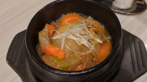韓国へ行ったコトないけど。 テレビで韓国の食に関する番組を見ていて、メイン料理を頼むと、メインの他に次から次へと小皿や小鉢に乗った料理やキムチなどが、スープとご飯と共に運ばれてきて、とてもボリュームある食事となるんだけど。 このお店は、たぶん似たようなスタイルなんじゃないかと。 コストパフォーマンスはかなり高いと思います。 故に、女性は注文する時にお腹の空き具合を伝えた方がいいんじゃないかな〜と。 とりあえず、大食漢な僕もお腹一杯になる程なんで。