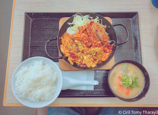 Read moreカツカレー、期間限定で150円引きでした。 「かつや」だけあってカツは普通に美味しいです。 カレーは前の方が美味しかったかなー。 「専門カレー」って書いてあったけど、何の、どこのよ?って感じ。。。 何に拘って「フツー」なのかがよーわからんな。 おろし大根が食べたくて「ポン酢おろし」を頼んじゃって…。 ポン酢要らんかったー💦 ダメ元で聞いたら、只の大根おろしに変えてくれたーーー‼️ スタッフさんは皆女性で、対応が笑顔でハキハキしてて、普通の料理が美味しくなってしまう。 気持ちの良い食事が出来るって訳です。 店内はリニューアルしたのかな?とっても清潔で綺麗なので、若干潔癖症の私も安心です。 が、むき出し割り箸差してあるのと、つま楊枝も同じなので、そこは本社で真剣に考えて対応して貰いたいですね。 スタッフさんでは勝手に出来ないので、上層部がお客の事を考え...