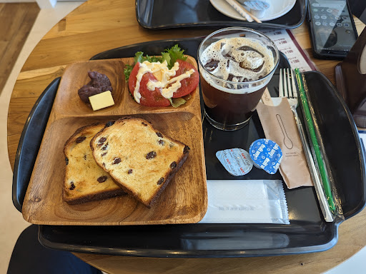 モーニングセットには、食パンが付いていますが、ノーマルやレーズンなどから選ぶことができます。私はレーズン入りの食パンを選んでみました。ふわふわで優しい甘さが特徴的で、これだけでも十分に満足できる美味しさでした。
