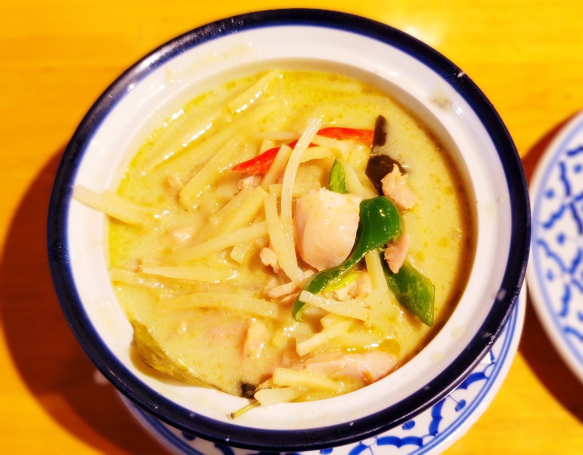 ◆独特な甘みなどあるも食べやすいタイ料理の数々 ・今回は「鶏肉のグリーンカレー」「ライス 小」を大人用に。「タイ風焼きそば」「鶏肉カシューナッツ炒め」「にんにくチャーハン」を子供とシェア、として注文させて頂きました。 ・「鶏肉カシューナッツ炒め」「にんにくチャーハン」は、期間限定「イーサン&バンコク料理フェア」の商品でした。 * 鶏肉のグリーンカレー(1,300円)/ライス 小(300円) クリーミーな甘みが際立ちつつ、お肉や野菜の旨味が引き立つ安定の一品でした。 * にんにくチャーハン(1,100円) 割とシンプルで優しい味わいのチャーハンに、ほどよいニンニクの風味が加わって素敵です。 辛み調味料(唐辛子入りのナンプラー)を別の小皿で提供してくださるので、子供たちとお皿で取り分けつつ、自分のお皿に辛みを追加して辛旨を愉しむことができます。 ただ、これが結構辛いです。初回、調子にのってざっとかけて口に入れると「かっら~」に。ひりひりが止まらない状態に笑 皆様もお気を付けください💦 * 鶏肉カシューナッツ炒め(1,300円) 甘みのある餡で絡まった、カリカリの鶏肉や人参・ピーマンなどの野菜とカシューナッツのハーモニー。 まるで、味付けとお肉が異なる日本の酢豚のようなお料理です。 子供には野菜を中心に食べてもらおうと思ったのですが、美味しかったのか、お肉を中心にバクバクと食べられてしまい、私たちは1つを半分こして食べることに🤣 * タイ風焼きそば(1,200円) 甘い甘~い焼きそば。ソース焼きそばになれた日本人の舌なのに、これが美味しい!と感じる不思議。 ぶりっとしたむきエビを2尾入ってくれているのも嬉しいです。 子供達も普段と違う焼きそばでありながら、「つるつるめんめんたべたい」といつもと変わらない要求をしてきて、ペロリと美味しそうに食べていました。 私たちは、にんにくチャーハン用に頂いた「唐辛子入りナンプラー」や、別途提供いただいたタイの調味料4種のうち「ブリックボン(唐辛子粉)」をかけて、旨辛に仕上げながら頂きました。 ・どれを頂いても、安定感のある美味しいタイ料理の数々。 ・夜に訪問して、タイビールなどと共に流し込みたいものです。