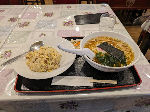 連れがGoogleマップで見つけて興味を持ったので2023.02.04の13時過ぎに初来店。駐車場は満車か?と思ったが運良く店舗前に1台空きがあったので停められた。駐車スペースはあまり広くないし、通りの往来が多いときもあるので少々注意が必要。 店内も混んではいたがすんなりとテーブル席に座ることができた。事前にGoogleマップで調べて知ってはいたが、メニューの種類はとても豊富。 二人で五目うまにそば850円、油淋鶏ランチセット800円(ご飯少なめで注文)、焼き餃子5個400円を注文。五目うまにそば850円は連れの評価はイマイチであったようだ。五目の割には具材が貧弱、餡のとろみが不足、麺が堅い、などの理由で。油淋鶏は非常にカリッ!と上手に揚げられていたが、中身の鶏肉の味は普通。でも下に敷かれたキャベツ中心の刻み野菜とともに、美味しく食べられた。ご飯を少なめで注文したのは、プラス100円でセットラーメンをつけたから。おじさんはもうそんなにたくさん食べられない。ご飯の米のクオリティーは高くはないが合格。ラーメンをつけなければ普通盛りで楽しめたと思う。セットのラーメンはさっぱりした醤油味で、これも自分には麺が硬め。素ラーメンではないが、チャーシューはなく、具はナルト、海苔1枚、ワカメとメンマ少々。但し麺の量は多く、普通盛りと変わらない。スープのコクは薄く、麺の味もどうということはなく、お腹もいっぱいになってきて途中で飽きてきた。しかしテーブルにある辛味噌を少し入れたら味が一変し、おいしく食べられた。このお店の薄味醤油ラーメンに、この辛味噌調味料は最強のサポーターであった。餃子は餡の肉も多めで、おいしくいただけた。 料理だけで評価させていただくと★3つで普通。しかしお値段の安さ(二人で2050円)、ランチの注文でソフトドリンク1杯無料、麺大盛り無料などの太っ腹サービスや、フロア店員さんたちのテキパキした接客サービスも評価して合計★4つとさせていただく。お財布に優しく、ほどほどにおいしく、ガッツリ食べたい方には文句な...