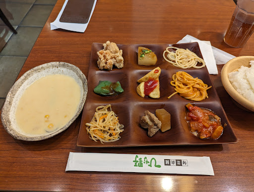Read more初めて来ました。誕生日だとサービスがあると来店後に口コミを読んだらあって、本当なら店頭にきちんと出してほしいです。なぜなら本日私のバースデー祝いで来たから。サービスって何かも知りませんが、とても残念。 その他のことではとてもコスパが良くて気に入りました。 レストラン風の外観を車で通るたびに気になってましたが、タイミングが合わず、今月半ばから消化器のトラブルで入退院したあとの食事なので野菜メインの看板に惹かれました。予約なしで二人で行くと平日のランチだからかすんなり案内され、たくさんの野菜料理を多様なお皿にバイキングスタイルで取り分けます。盛り付け作業が楽しくなります。 生野菜が少ないという声もありますがそれは家でも食べられるので、私は手間のかかる惣菜が嬉しい。味は思ったよりかなり濃いですし、辛味もしっかりしてますが、これは好みだと思います。デザート、ハーブ茶もたくさんあります。量は食べられないのでほんの少しずつほぼ全てのものを試食しました。特に気に入っておかわりしたかったのは、かぼちゃのプリン。デザートでは1番プリンが好き。でもおかわりに行ったらもうなかった。 次は2個とろう。 あとはお汁粉。粒あん派なので。熱々でなくてぬるかったのは残念ですが、猫舌の人にはいいのかも。 マカロニグラタン、これは熱々でクリーミー。うまかった。病み上がりで揚げ物が食べられなかったけど、さつまいもの天ぷらが揚げたてで出てきた時はとっても美味しそうでした。 そしてコーンスープ。今日のトップ賞です。豚汁も冷製かぼちゃスープもうまいけど、熱々のコーンスープにはかないませんでした。 汁物でお腹を満たしたら揚げ物以外の惣菜が入らないので断念しましたが、ここは汁物がとってもおいしい。具がないところもあるのにたくさん入っています。お腹ダポダポになりそうなのでやめましたが、自制心が必要です。 ブッフェレストランは値段が高いと食の細い私には割高です。おいしくてたくさんのものをほんの少しずつ食べたいのに近年は高い値段設定で行けません。過去にはとバスで都内のランチブッフェに行ったこともあるのですが、もう今では高くて高くて。 ここは価格と料理のコスパがこの辺りでは一番いいと思います。 お休みの日は混んでるとあり、また平日に今度は念のた...