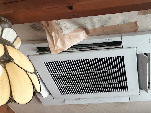 そして他の方の口コミにもあったように椅子が動かないくらい床がベトベトです。 そして天井の壁紙は剥がれっぱなしでエアコンはカビだらけで全く掃除がされていないのがわかります。