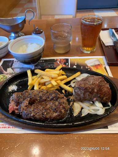 Read more昼時に近くを通った時寄りました。今日はがんこハンバーグ&柔らかステーキを頂きました。ステーキはすっとナイフが通り柔らかくて美味しかったです。ハンバーグの方は粗挽きで食べ応えあります。+400円でサラダバーをつけて新鮮で数種の野菜を頂きました。 次の日もランチメニューには無いがんこハンバーグ500g+サラダバー(+500円)+ドリンク&ジェラート(+270円)を食べに伺いました。ジェラートに関しては特に素材の風味が良く大変美味しく何回もおかわりしてしまいました。