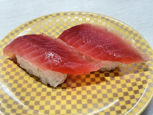 This is said to be one of the better 100 yen sushi restaurants in the area. It was clean and spacious inside. Everything looked newly renovated within the last year or so. There was a long wait when I went during Saturday lunch hours - about a 15 minute wait. You go in and "sign up" for a table with the machine right at the entrance. I don't remember it having English language capability, but I could be wrong.