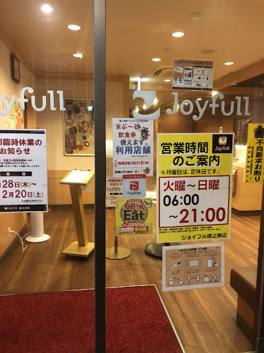 Read more津々浦々のジョイフルを訪れたが、知る中で一番小さなジョイフル。メニューは本土と基本的に同じだが、季節限定メニュー等で一部サービス外のものあり。レクストンに泊まるとここが朝食会場になる。 一応メインストリートに面した立地だが、ジョイフルの看板は出ておらず、宿泊者と地元民以外はまず気づかないひっそりとした立地。 ハナから観光客は相手にしていないのだろうか。 気軽に入れる喫茶店が少ないのと、訪問したのが滞在中にコロナクラスターが発生し、飲食店の多数が営業中止していた中...