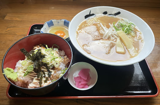 《2024/3/17(日)》 徳島卸売市場の近くにある以前から気になっていた"大河(たいが)"さんを初訪問😄 お店オススメの"チャーシュー丼セット(中華そば 小 + チャーシュー丼...