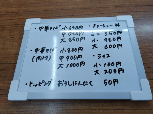 タウン誌、ネット情報を見て来店。 今は亡き美渓さん系列? 2023/11/4~オープンということもあり、まだまだ情報の少ないこちら。 普段は昼営業されてるまきもと食堂さんを借りて土曜の夜だけ営業されてるとの事。 この頃多いですね土曜日限定とか。月~金曜日は他の仕事されてるんかな?ご苦労様です🙇 開店前に並んだ方がいいとか開店1時間弱で売り切れるとか。そんな情報も有ったので早目に到着🚙 駐車場は店の右側の細い路地入った所にあります。6~7大歓迎位停めれるかな?見通し悪いので出入りは慎重にどうぞ。 開店15分前についたら私で2グループ目でした。けどしばらくして奥さんすぐ開けてくれました。 これはありがたい。寒空だけに。 水はセルフですが卓上にピッチャー有。 カウンター有りますが店名の元になった魁君と希ちゃんが座ってるのでお一人様もテーブル席を使います。 非常に大人しい二人。父ちゃん母ちゃん厳しいんかなぁ。 良いですね。働くお父さん達見れるの羨ましい。 さてオーダー👍️ 初日なので無難に肉入りの小とチャーシュー丼のミニをオーダー。 予想はしてましたが提供までのお時間は長目。自分はさほど気にならない程度ですが。 先にチャーシュー丼のミニから着丼。 出来たら物から持ってきてくれるスタイルはありがたいですね。 ミニだとお茶碗サイズでした。チャーシューもそれなりに入ってる。 チャーシューはカチカチ系ですが、何故かよく味が染みてる。 この塩味加減、確かに美渓さんぽい。 程なくしてラーメン着丼🍜 レンゲが無かったので先に麺からいただきましたが、正直、ちょっとのび気味。慣れてきて提供時間早くなったら改善されそうなレベルで許容範囲内ではありました。スープとの相性も良い感じ。 で、レンゲ持ってきてもらいました。自分は頼めたけど、欲しいけど声かけ辛いって内気な人も居るんじゃないかな。初めから付けとくか席に置いとく方が良いかも。 で、スープを拝借。一口目は意外にあっさり。食べ進めると次第に濃厚に美渓っぽく。 これももしかすると作り手のスキルなのかな? 次からはよく混ぜてから食おうかな。 ただ美渓さんみたく臭みというか荒々しさは感じなかった。自分はあの荒々しさ好きでしたがこっちの方が万人受けしそう。手間もかかってそうだし。 チャーシュー多めに入ってる割にスープがぬるくなる等も感じませんでした。 モヤシもシャキシャキ。好食感。 総じて自分は好みの味でしたが塩味は強目なので好みは分かれるかも? 店主さんが作業に慣れてきたら更に良くなるでしょうね。 心地好い熱意も感じましたし。まだまだ化けそう。 その頃、お客さん増えて並ぶの大変かもね。 来るたび大きくなってる魁君と希ちゃん見るのも楽しみ😆 ごちそうさま...