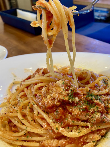 Read moreお店はお洒落だし、お値段は手頃ですが、接客や味はイマイチでした。 駐車場は店前に4台。店内に入ると、おしゃれな印象を受けましたが、よくよく見てみるとお客様が座るスペースのすぐ後ろに、床に直置きされた新聞や雑誌。キッチンハイター。 牛乳パックや紙パックのジュースが入った縦型の細い冷蔵庫らしきもの。透明なので中が丸見え。整理整頓されているならいいですが、ちゃんと並んでおらず、乱雑に放り込んだであろう牛乳やジュース。 日替わりランチAのパスタを選びました。 今日はボロネーゼでしたが、見た目はともかく、味はボロネーゼから程遠かったです。 ボロネーゼというより、トマトソース。 ひき肉も少なく、肉感もないので、コクや旨みが感じられず。赤ワインが入っているようにも見えない、酸味強めのお味でした。 これは本当にボロネーゼ…??と思いました。 料理の提供も、背後から無言で置くし、お水を注ぎに来る時も無言でスッと来るから、内心びっくりする。 そしてコップの飲み口を上から掴むようにして、何も言わず、ゴンって置かれた。