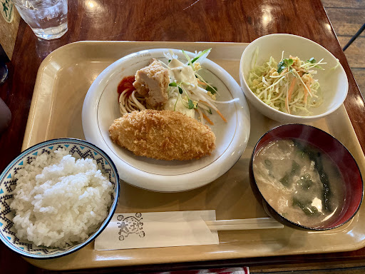 Read more中洲にあるお気に入りの洋食店です☆彡 とても大きな熱々でほくほくのコロッケと、唐揚げ、サラダ、味噌汁が付いて、 700円と言う驚き‼️価格なのです。